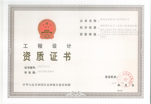 陕西永安照明工程有限公司成立于2012年12月,座落于西安市高新区,公司注册资金2100万元人民币,是一家集工程设计、施工、服务于一体的专业工程公司,我公司拥有城市及道路照明工程专业承包二级、建筑工程施工总承包、照明工程设计专项乙级等资质以及ISO9001质量管理、ISO14001环境管理、ISO45001职业健康安全管理三大体系认证证书。我公司现主要以工程承包为主,业务范围包括:照明工程、园林绿化工程,市政工程、钢结构工程等。 通过不断提升企业的核心竞争力,使企业在发展中树立起良好的社会形象。团队凭借专业的水平和成熟的技术,以科学的管理手段,雄厚的技术力量,将不断深化改革、创新机制、适应市场..........